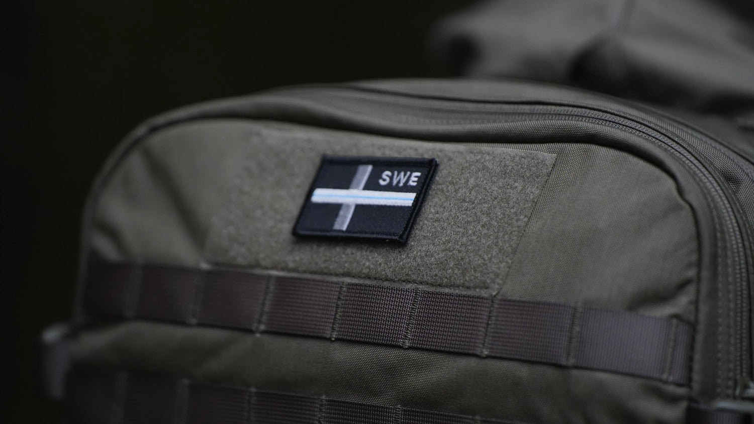 Svart/ grå, blueline patch från Nordvind med texten SWE i högra hörnet.