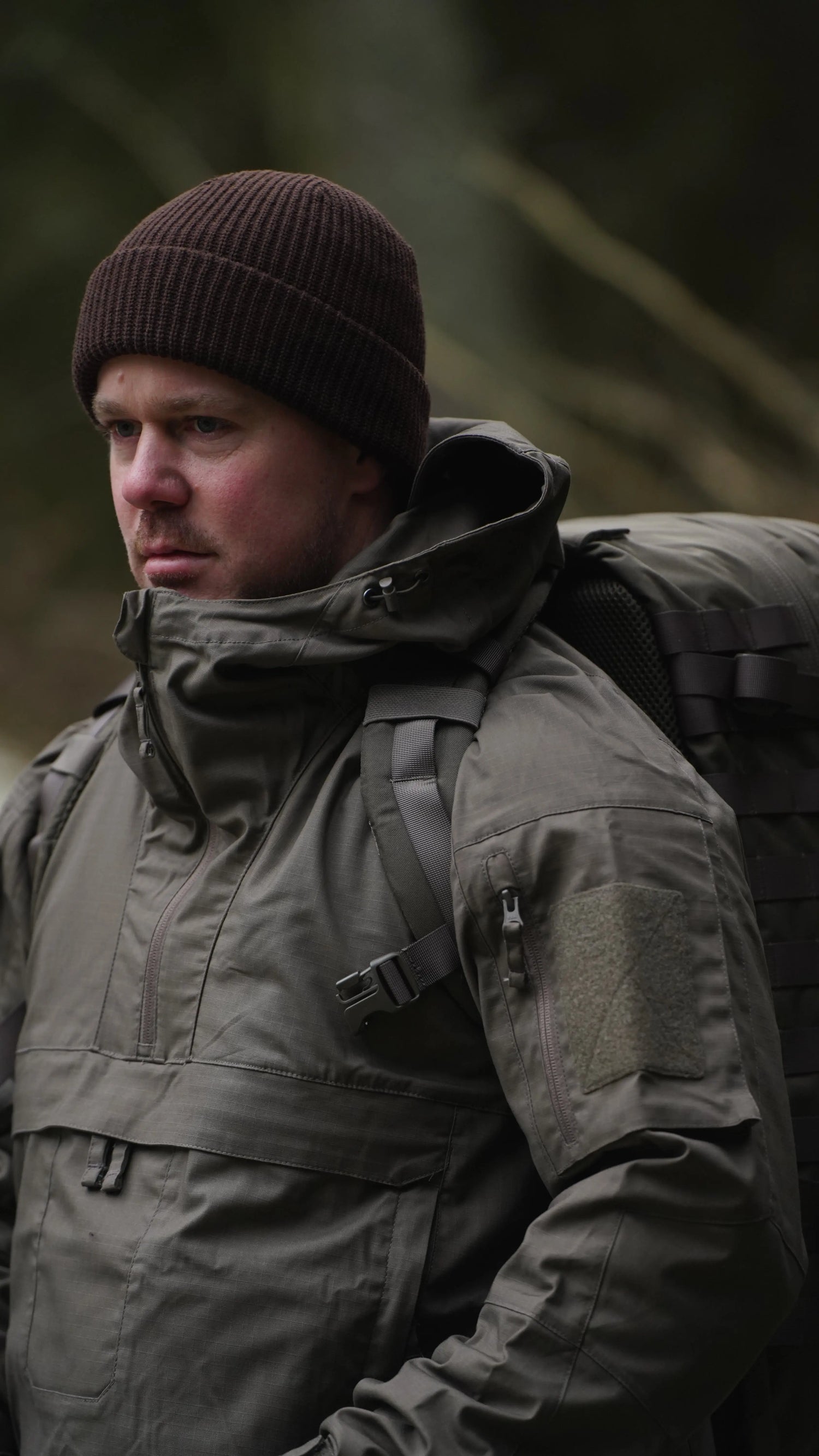 Genomtänkt, stilren anorak från Helikon-Tex med flertalet praktiska fickor. Jackan är "loose oversize fit" för att kunna bära en tjockare tröja under jackan under dom kallare månaderna.