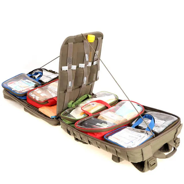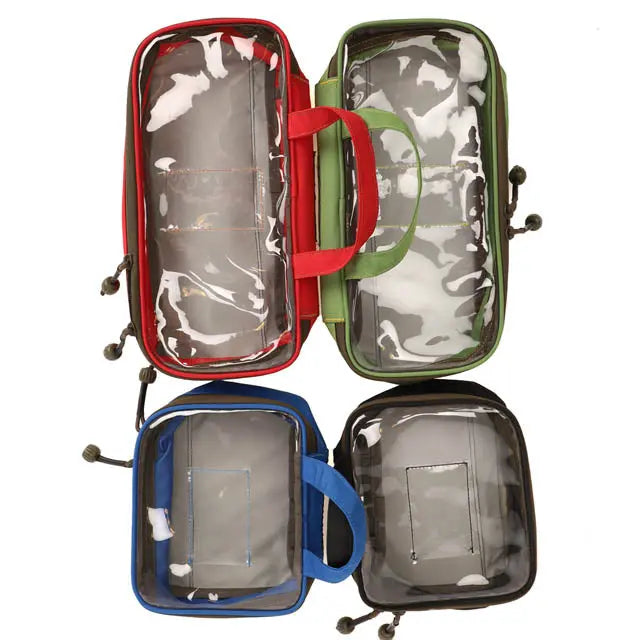 - FYRA färgkodade fickor som håller ordning på sjukvårdsmateriel eller teknisk utrustning